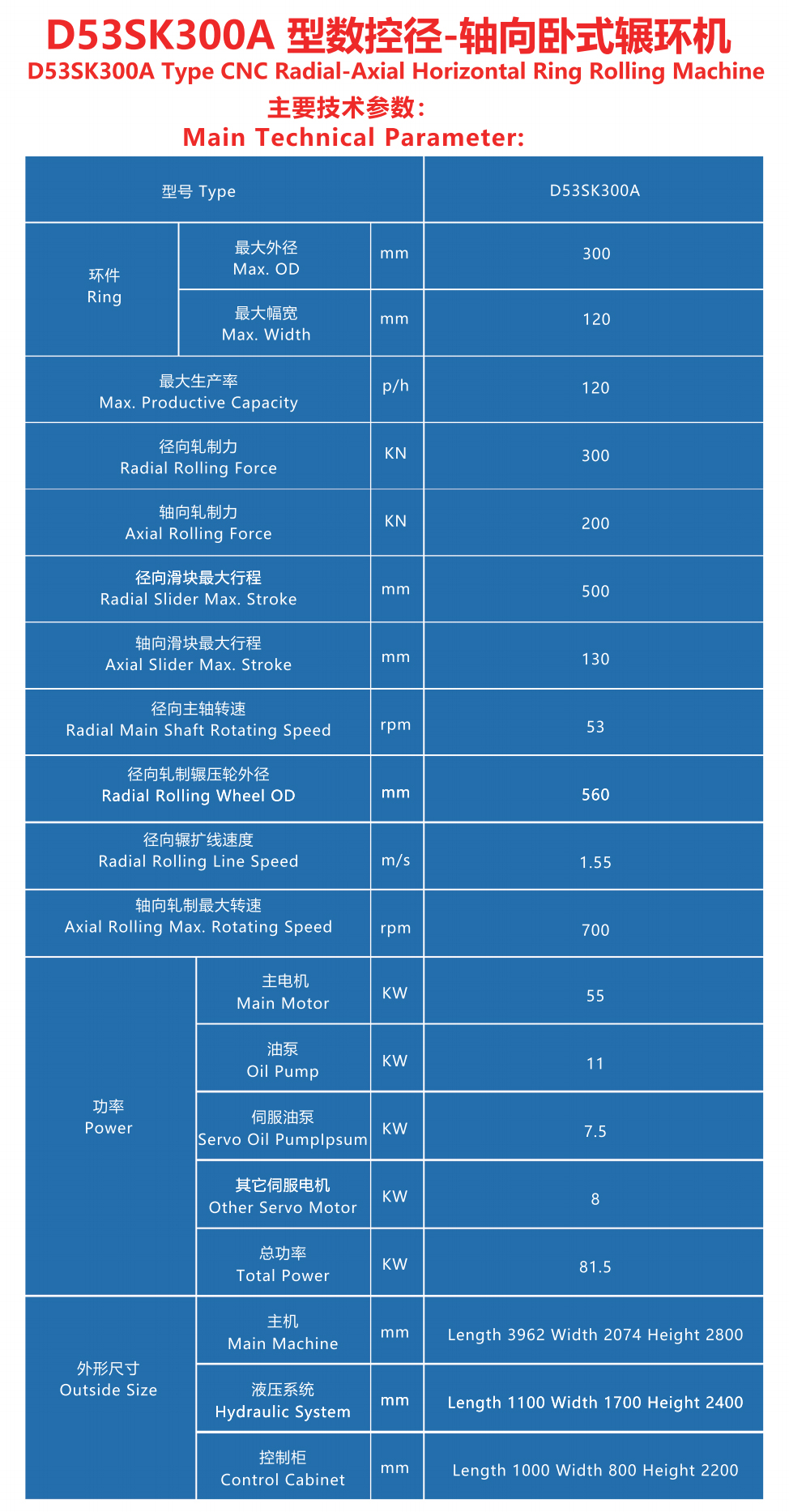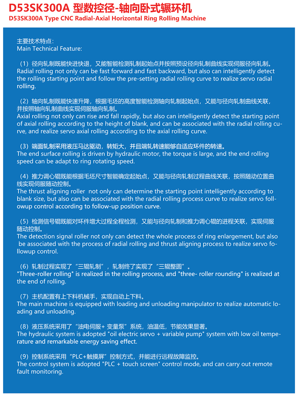 (8)液压系统采用了“油电伺服+ 变量泵”系统,油温低,节能效果显著。